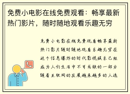 开发和运营影视流媒体平台,提供海量影视作品的线上观看服务,方便用户随时随地享受优质内容。